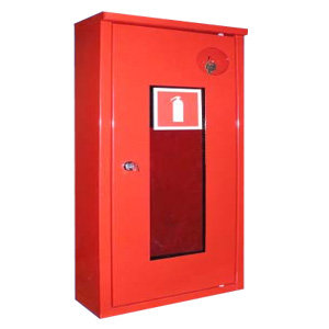 Шкаф пожарный ШПО-103 с окном для размещения в нем одного огнетушителя массой от 6 до 12 кг.